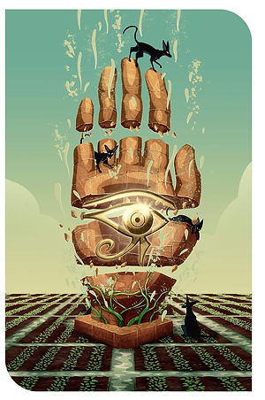 Dans un jeu de société, l’illustration doit guider sans distraire. Pour Chaos Fertile, j’ai donc veillé à ce que chaque visuel soit au service du gameplay, en intégrant des éléments qui favorisent la compréhension et la prise en main du jeu. L’univers graphique est conçu pour être aussi inspirant qu’intuitif, offrant une immersion complète dès la première partie.